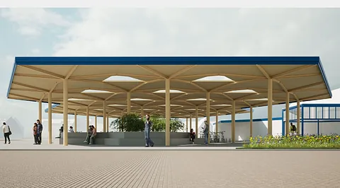 Als onderdeel van de herinrichting van het busstation wordt de bestaande kap vervangen door een nieuwe overkapping met fietsenstalling en wachtruimte voor reizigers.