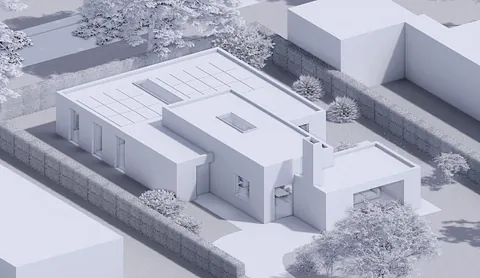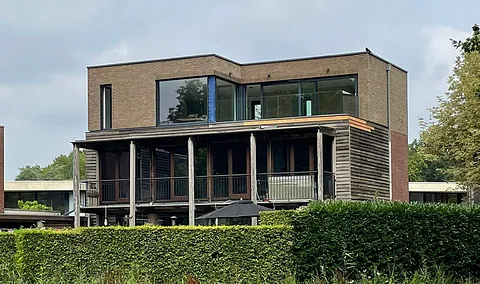 Nieuwe woning opgebouwd in houtskeletbouw met hergebruik van bestaande fundering en begane grondvloer.